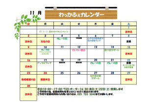 > わっかふぇ11月営業カレンダー