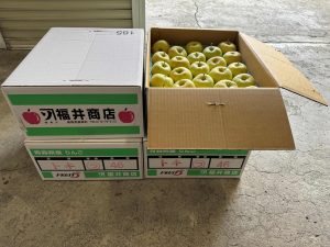 2025年10月28日 丸喜屋さんより、りんごを頂きました🍎 本部事務局 丸喜屋さんから、りんご🍎を頂きました。 箱を開けた瞬間💛 とっても美味しそうなりんごの香りが広がりました。 早速、各施設に配らせて頂きました。 いつもありがとうございます<m(__)m>