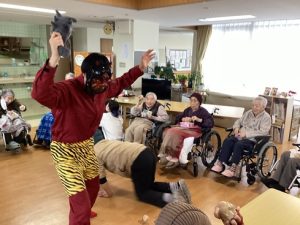 特養では毎年恒例、節分に豆まき!