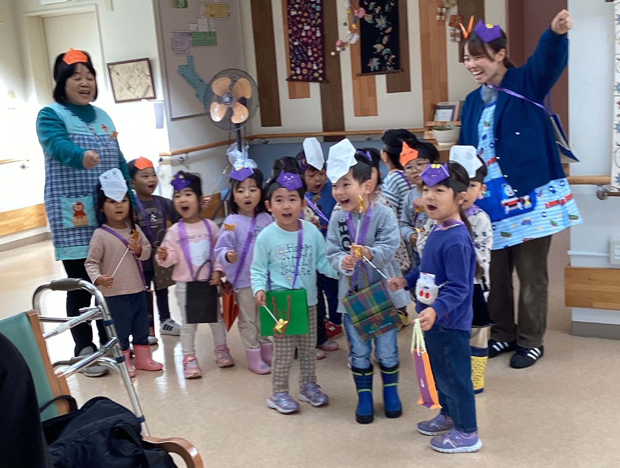 むつみこども園の子どもたちが遊びに来てくださいました。子どもたちが園内を歩いていく姿をみるだけでも喜ばれておりましたが、