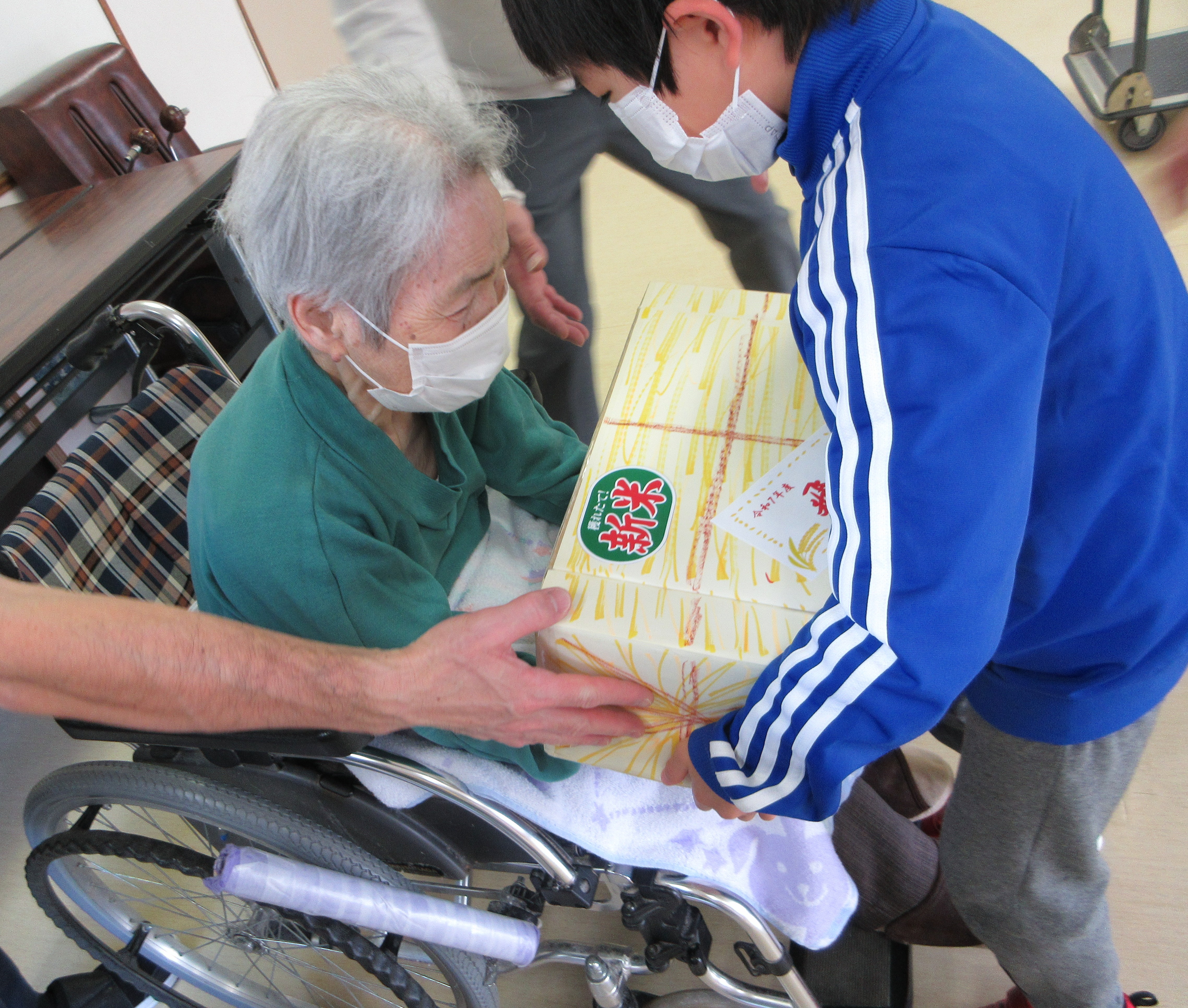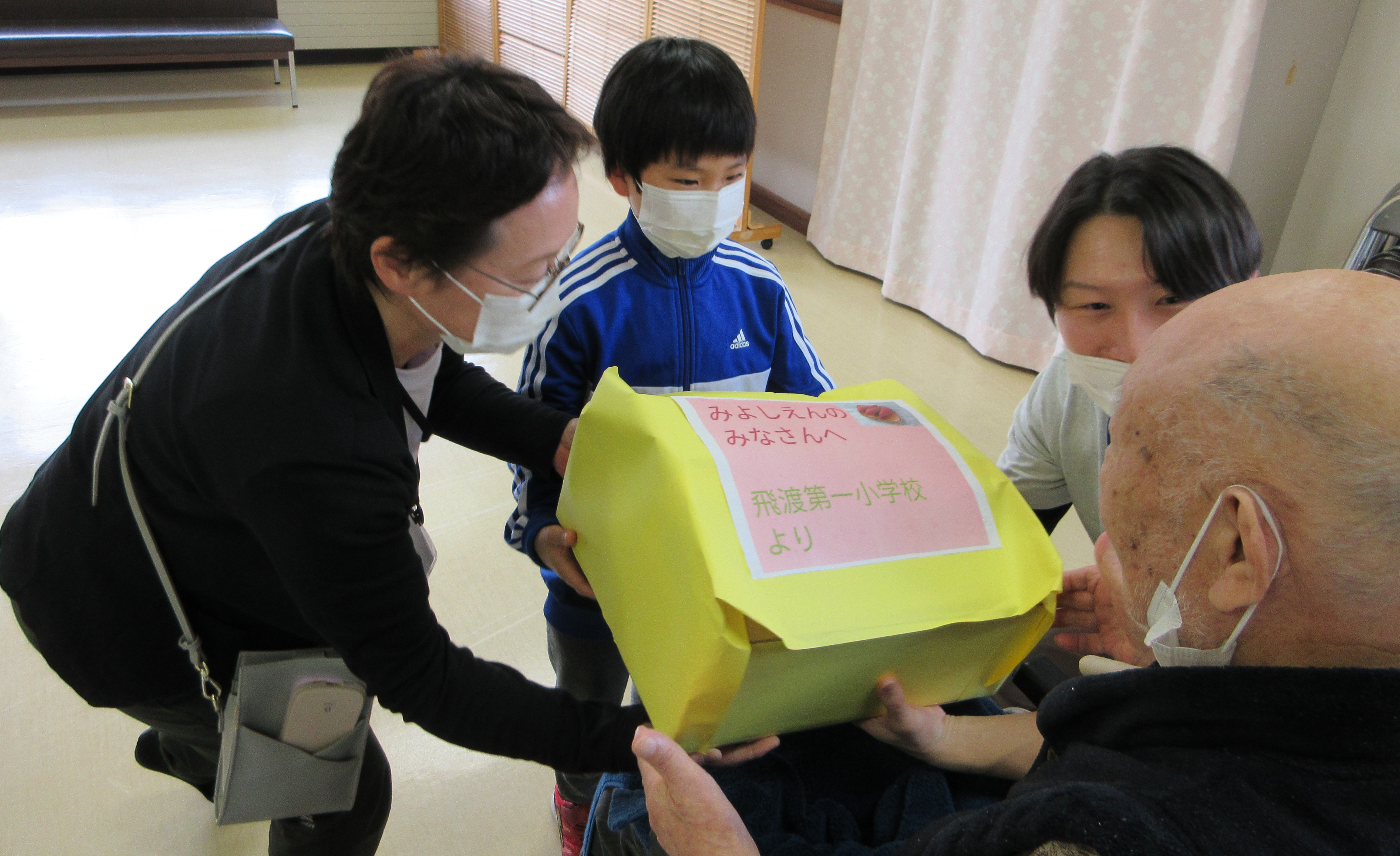 11月10日、飛渡第一小学校の子どもたちからお野菜とお米を頂きました。