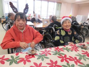 メリークリスマス! 今月の喫茶の日の様子をおすそ分け😊 ケーキやジュース、ビールも提供させていただき、入居者の皆様も喜ばれていました!