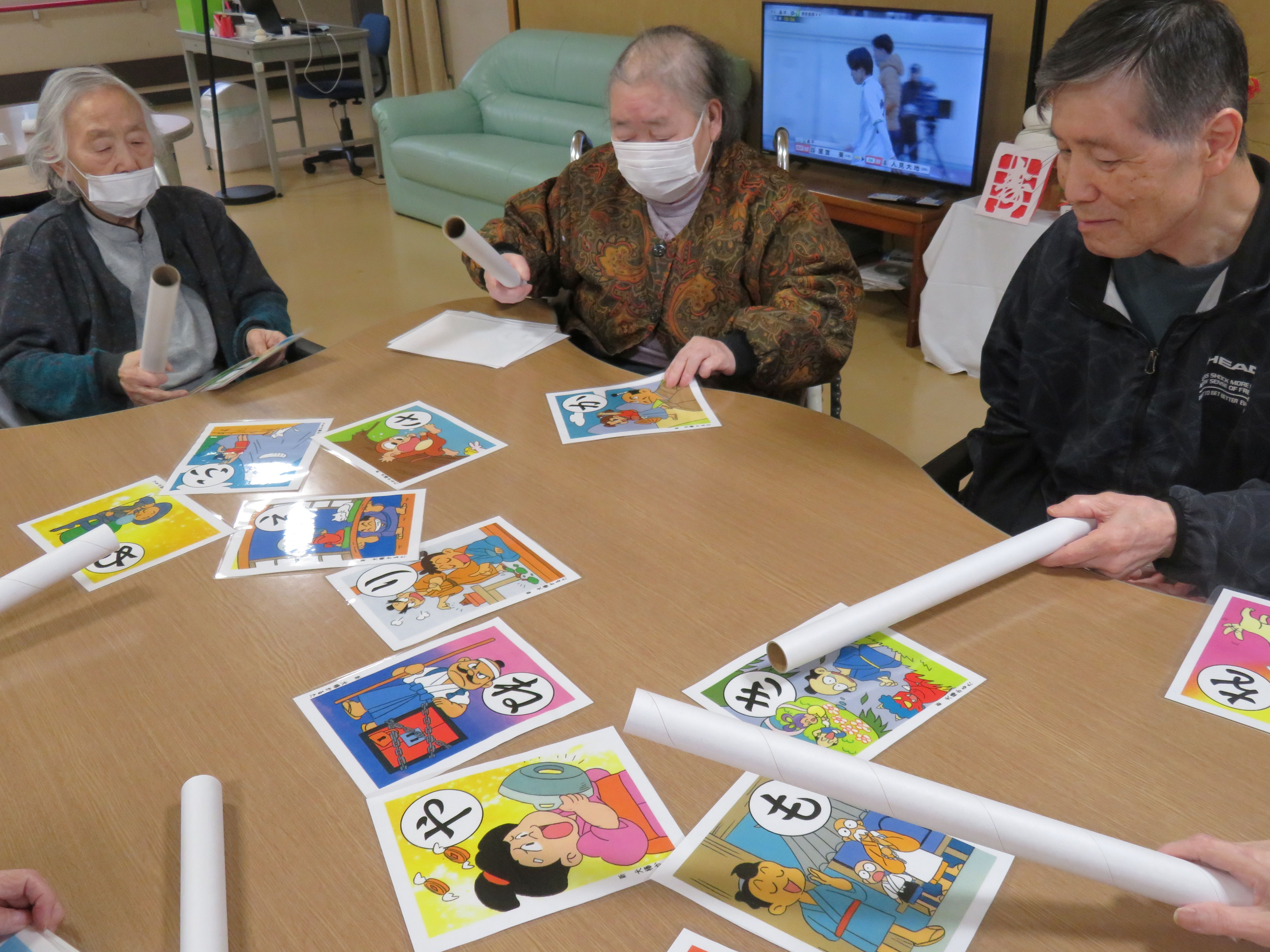 2026年2月2日 お正月の様子と喫茶の日 三好園 お正月の様子をお届けします。☃ かるた大会や紙相撲をしてお正月を過ごしました。皆さん、楽しそうにされていました!😊 喫茶の日 ☕🍰 3通りの方々が一緒にお茶を飲みながら楽しそうにお話されていました。コーヒーやプリンが提供されました!
