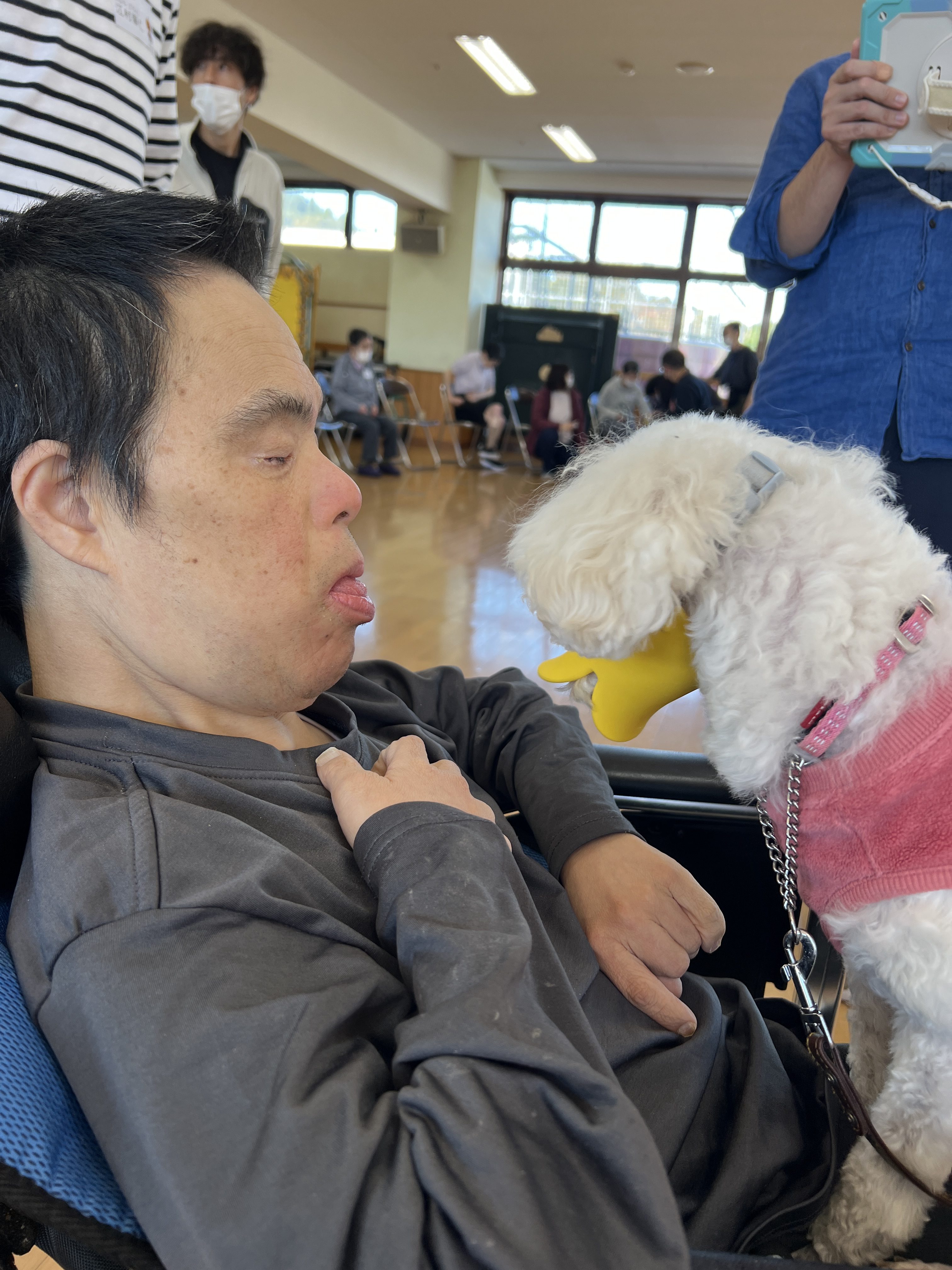 10/24になかまの家で、法人生活介護部会の主催のドッグセラピーが3つの生活介護事業所(なごみの家・ケアホームげじょう・なかまの家)の利用者と職員が集まって行われました!