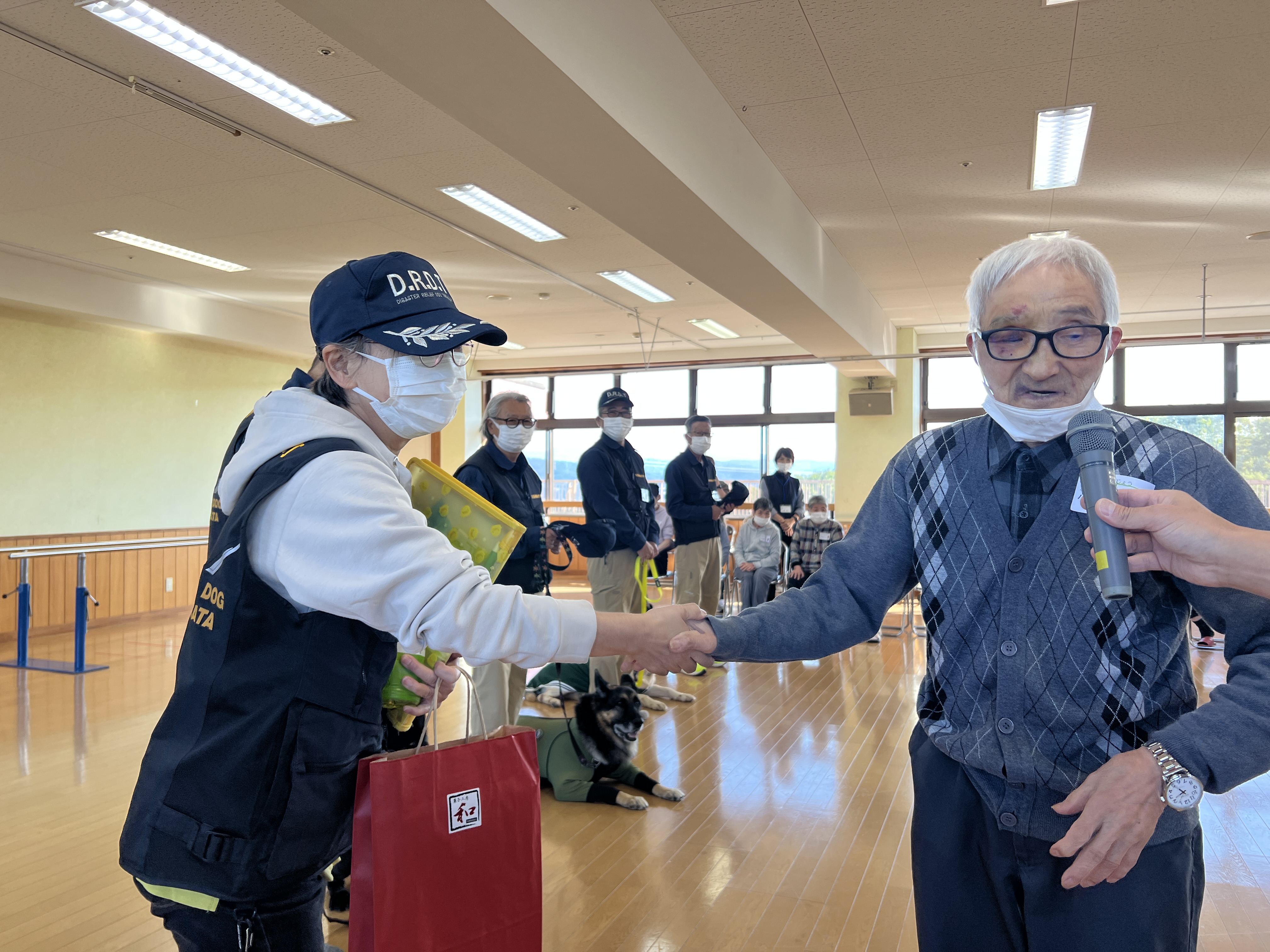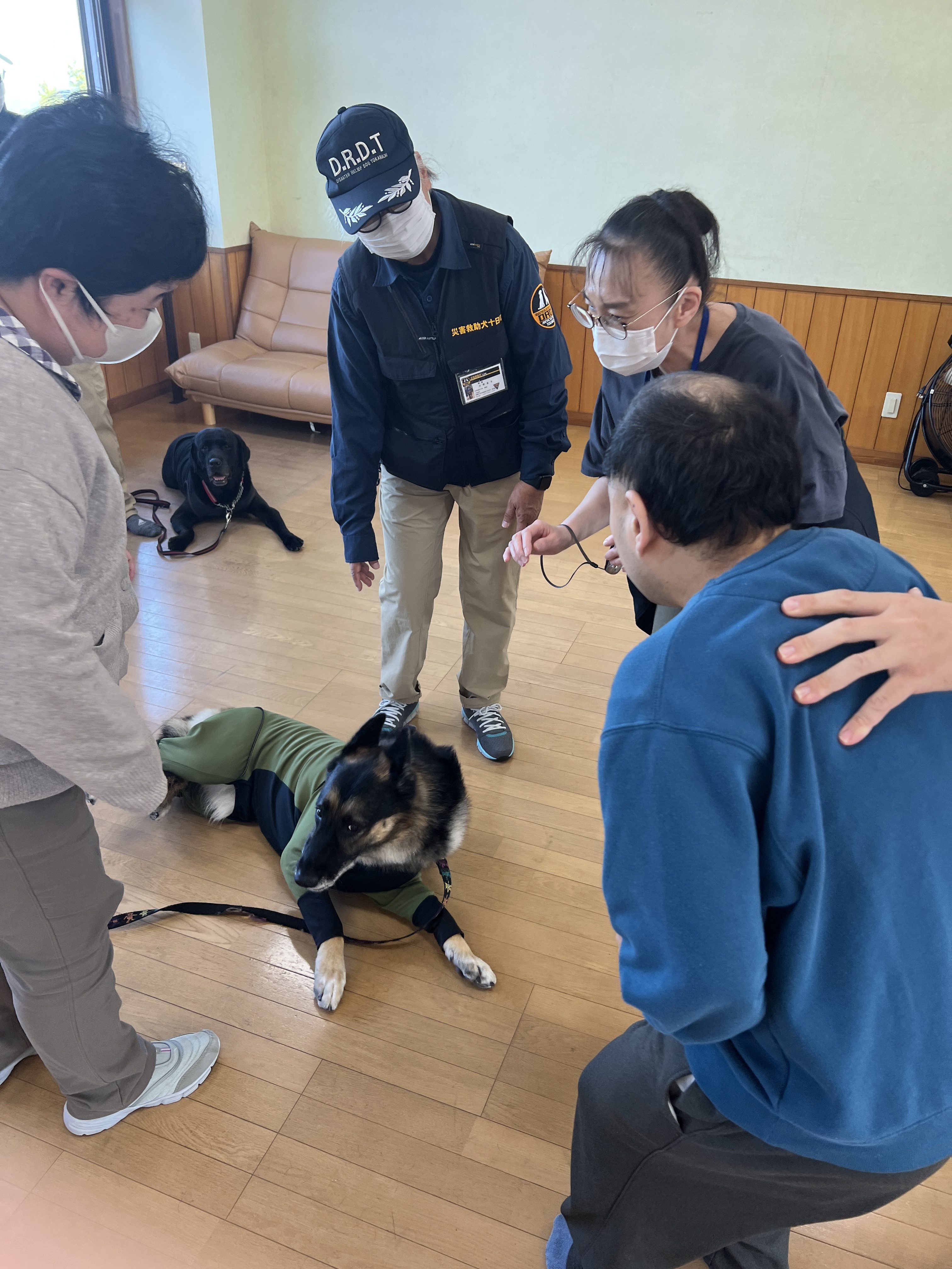災害救助犬 十日町様のご協力でかわいいワンちゃんたちがなかまの家に来てくれました。日々の訓練の様子も披露いただき、会場は大盛り上がりでした。