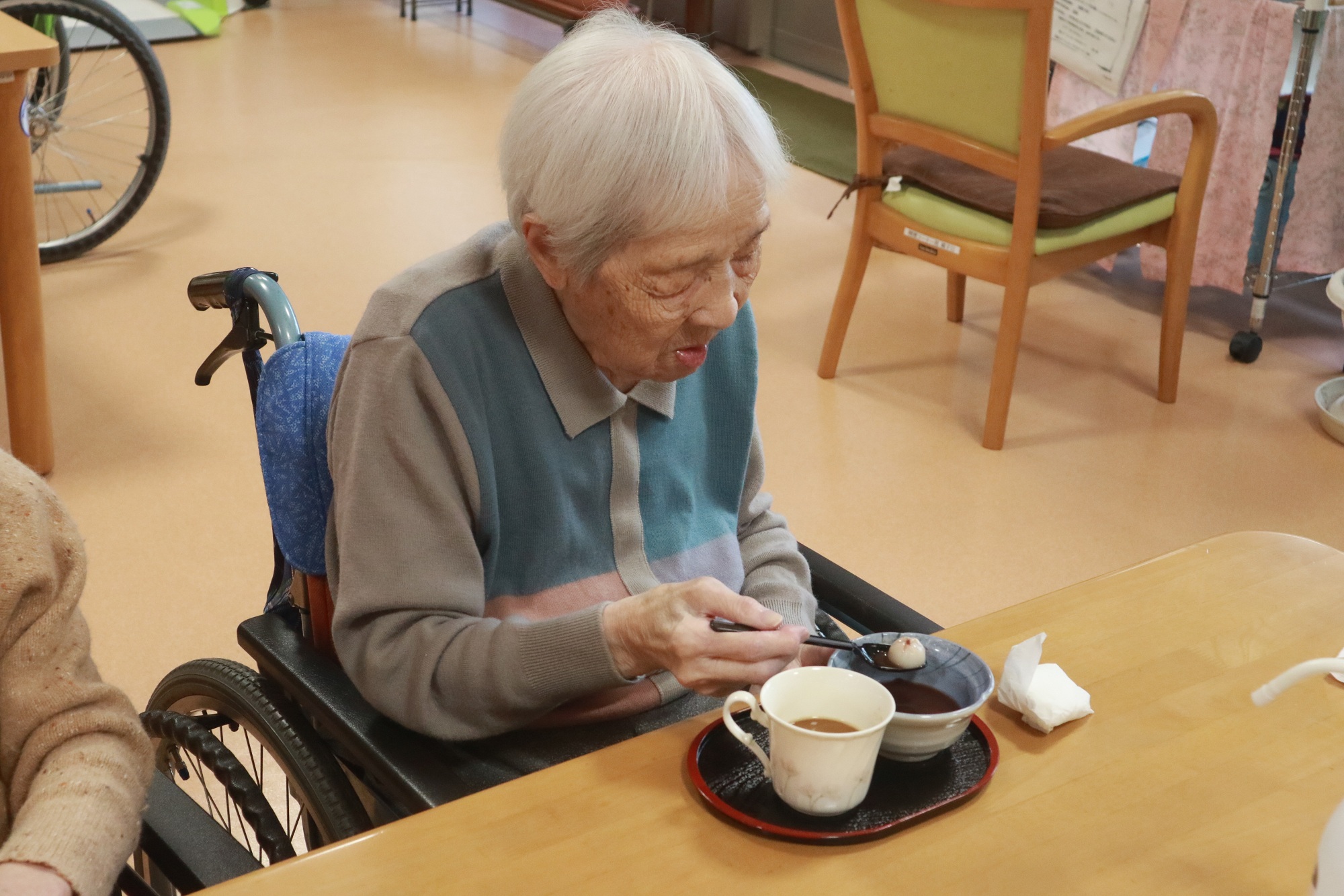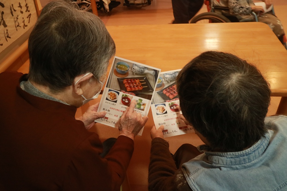今回は和スイーツを用意し、入居者、利用者の皆さんから選んでいただきました。
