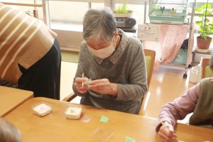また他の方のお花を見て感想を言い合ったり、会話を楽しみながら、少しずつお花が出来上がっていく様子が見られました。