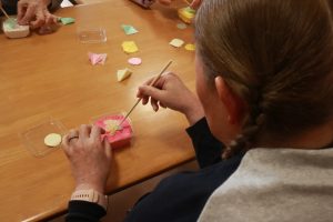 皆さんが「どの色がいいかな」と楽しみながら紙を選んだり、紙粘土に差し込む作業に集中されている姿がとても印象的でした。