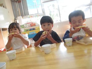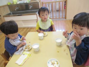 食欲の秋!美味しい出来たての給食やおやつを食べて元気いっぱいの子ども達です🎵