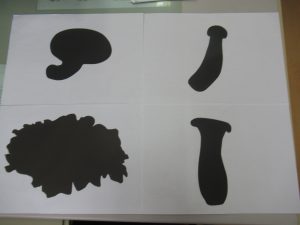 どんな種類があるのかシルエットクイズをしたり、実際にきのこに触れてみました。