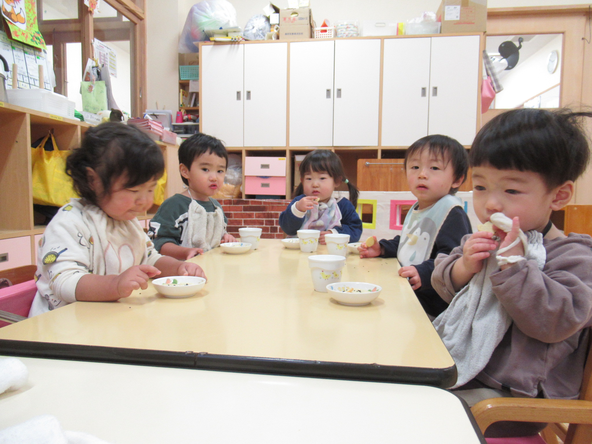 2025年12月15日 美味しく頂いています!! しんざこども園 地域の方からお米や、糸瓜・さつまいもなどの野菜を頂きました! 毎日の給食やおやつに使用させて頂き、喜んで食べている子ども達です。 さつまいもは子ども達の大好きなおやつに大変身~★ さつまいもクッキーでいただきまーす!! 甘くてとっても美味しかったよ😊♥ 多くの心遣いありがとうございました😊