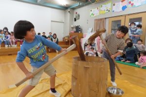実際に杵と臼を見ることも少ないので前日から子ども達も「はやくしたい!」とやる気満々!!