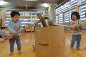 年内の保育納めの26日は餅つき会をしましたよ。