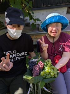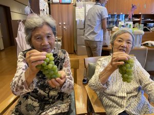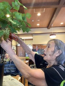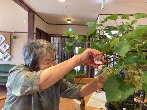 2025年9月30日 🍇秋の味覚 ぶどう狩りに行ってきました ケアホームうえの 職員のお宅におじゃましてぶどう狩りをしました あじさい・なでしこの入居者様と一緒に、たわわに実ったぶどうをたくさん収穫しました 施設に持ち帰り甘いぶどうを皆で堪能しました ぶどう狩りに行けなかった方も鉢植えのぶどうを収穫しました