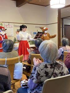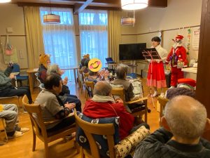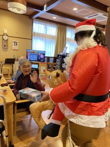 2025年12月30日 🎅メリーメリークリスマス🎄 ケアホームうえの 心待ちしていたクリスマス会を開催しました。 サンタクロース🎅からサプライズプレゼントがあり、ピースサイン✌で写真撮影です! 美しい声色の讃美歌や、懐かしい昭和の曲「上を向いて歩こう」が優しく響き、参加いただいた入居者、利用者様から「楽しかった」「うれしかった」といった温かいお言葉をたくさんいただきました。 メリークリスマス!