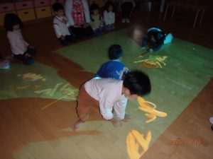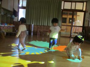ゆうこお姉さん(園長)ちづるお姉さん(副園長)と一緒にタオル遊びを楽しみましたよ。