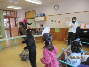 豆まきの後は…お楽しみ♡福の神(園長先生)からの福のプレゼントです😊ひよこ・こあら組さんには福の神が一人ひとり手渡してくれました。