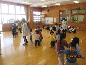 大根抜きはりす組さんとうさぎ組さん、ぱんだ組・ぞう組さんが赤組白組に分かれてそれぞれ抜いたり抜かれたり…順に行いました。その後、職員も子ども達と大根抜きを楽しみましたよ😊抜かれないように必死な先生達です(笑)…最終的に抜かれましたが😂
