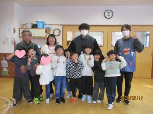 ~おまけ~                                                            木の球を手にかくして「ど~っちだ!?」と市のイケメン職員さんとキャッキャ♡していたぞう組女の子でした😁