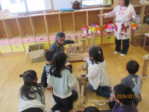 十日町市の木育事業に園長先生が応募して、うえのこども園が選ばれました✨ありがとうございました。そこで「森のおくりもの」代表の高橋俊一さんにリクエストをして、木のおもちゃ(ピタゴラコロコロ)を作っていただきました。