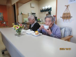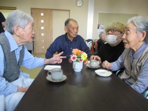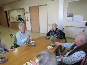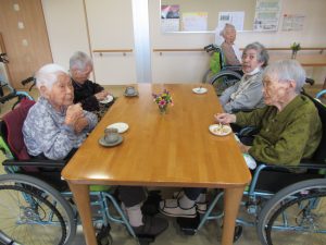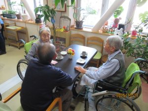 特養・ショートステイのご利用者が一緒にお茶を飲みながらお話をして楽しく過ごされました😆