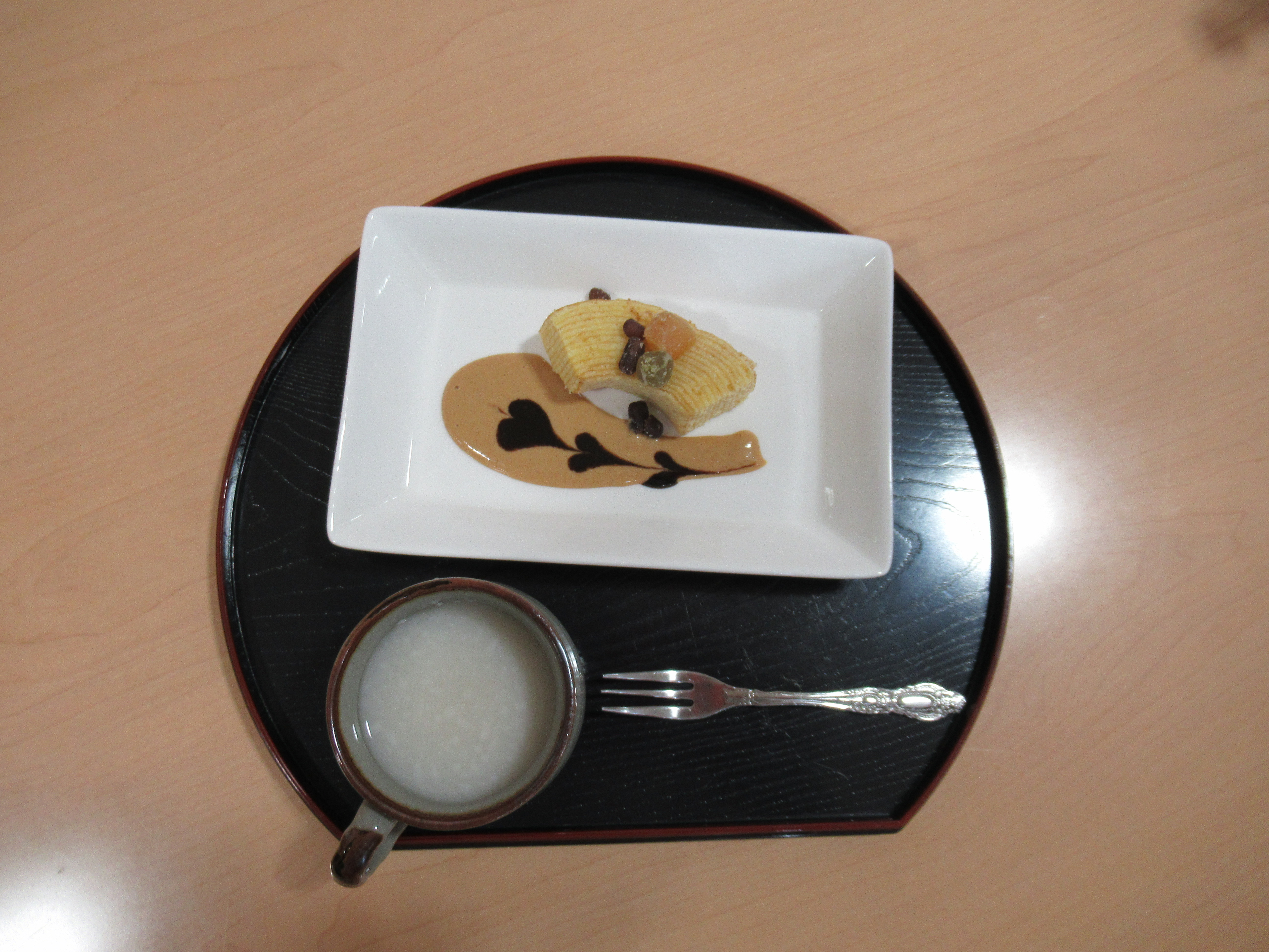 2月16日に喫茶を行いました。今回はバウムクーヘン甘酒です😋