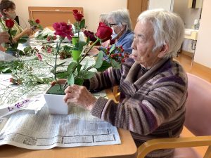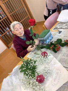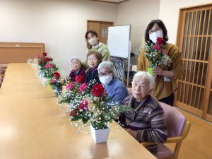 四ツ宮では赤と白の彩りの花を使ったフラワーアレンジメントを行いました!