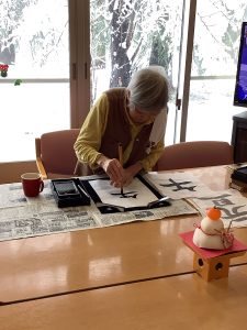 小規模では昔の著名人のカルタ取りや書初めを行いました。